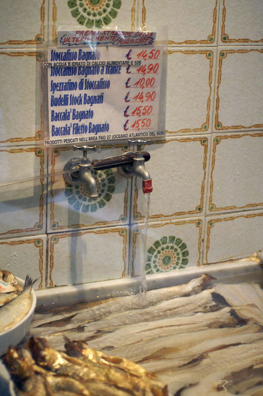 Genoa’s Old Town is much like Nice must have been a few decades ago: vividly colored in shades of ochre and pink, surprisingly ornate in places but also a bit rough around the edges. The seeming lack of a tourist industry is no bad thing since it means that the traditional food shops have survived, catering to locals who know their stuff. Greengrocers were flourishing and there were shops selling everything from pre-soaked salt cod in marble basins to high-class olive oils and condiments from all over Italy.